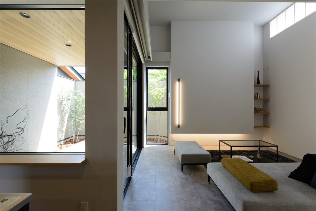 富山市の中心部に近い場所で、住宅密集地の立地ですが、中に入るとそのような外の状況を感じさせないプライベート感のある設計になっています。