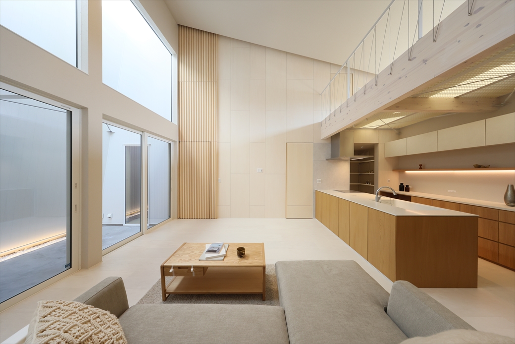 これ以上ない耐震強度として、構造計算による耐震等級3を確保した上で空間の広がりも確保しており、デザインと性能を両立させています。