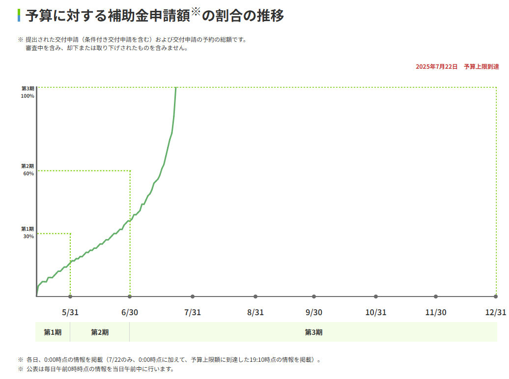 業界としても注目の高かった政策なゆえに、補助金消化は早いと予想されていましたが、急に予算が尽きたため、業界関係者も驚いていました。