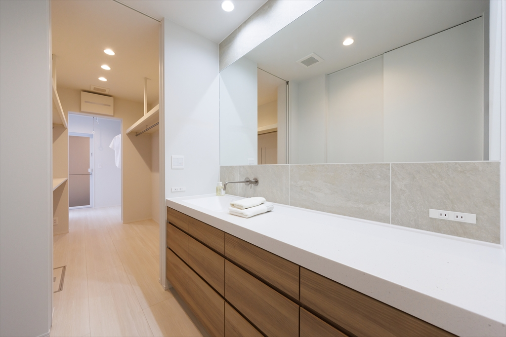 廊下は移動するためだけの空間ですが、ここを「ファミリークローゼット兼廊下」にしたり、リビングと一体化させたりすることで、実質的な居室スペースを削ることなく、全体の坪数を減らすことができます。
