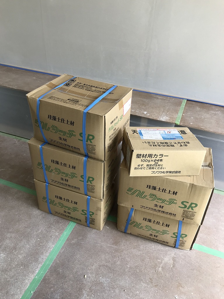 今回のお家は、塗り壁(珪藻土)仕上げの部分が