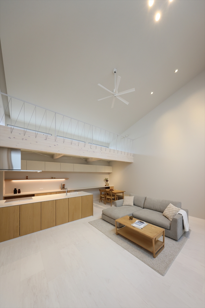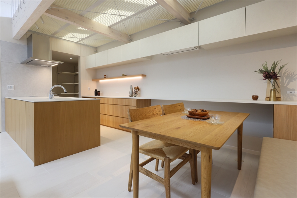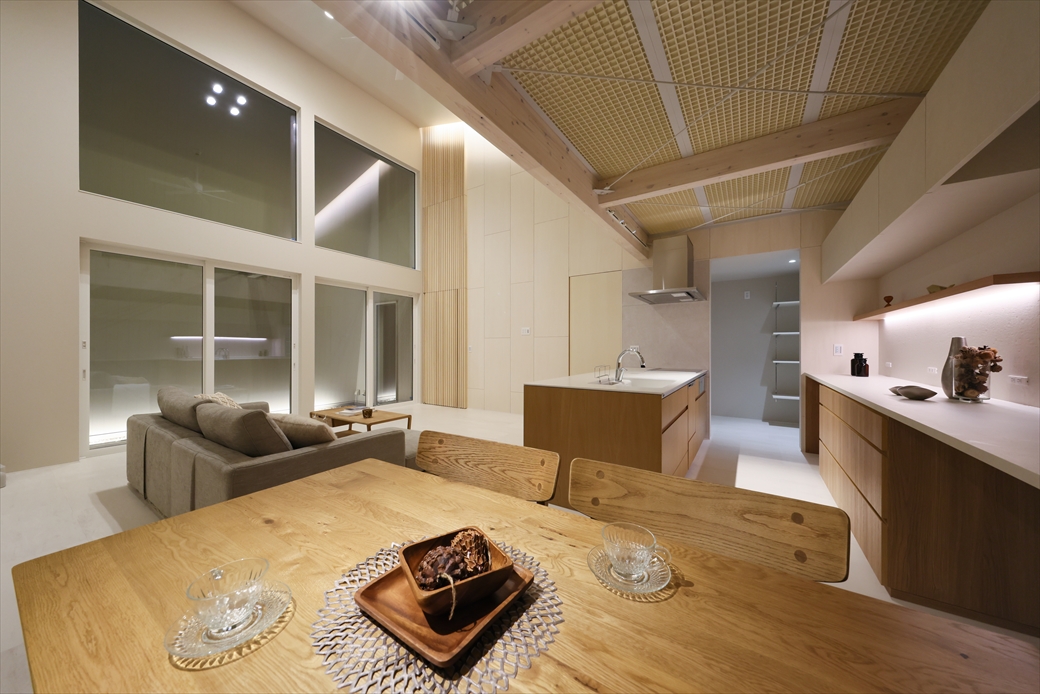 耐震等級3をクリアしながらも実現した開放的なLDKと、時代のニーズに合わせて1階寝室を採用した設計プランニング。